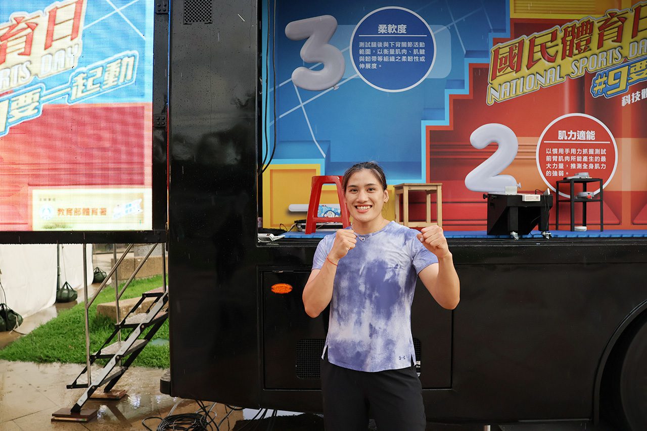 教育部體育署規劃科技體適能檢測車,於113年9月每週巡迴全臺檢測,今年2臺檢測車同時開跑,檢測活動擴大辦理,除了北、中、南場次外,還首度規劃東部場,現已順利完成9月第1週、第2週的免費檢測,累積近千人參與檢測。今(14)日,巴黎奧運銅牌拳擊女王、113年度國民體育日代言人陳念琴也來到高雄夢時代的檢測場次與民眾相見歡!