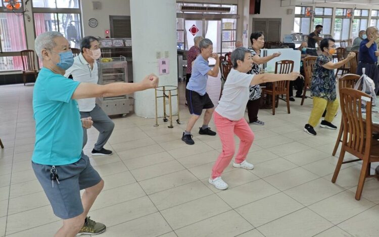 ▲早餐後,蘇再勝家主任建議招集大家一場八段錦活動。(圖/榮家提供)