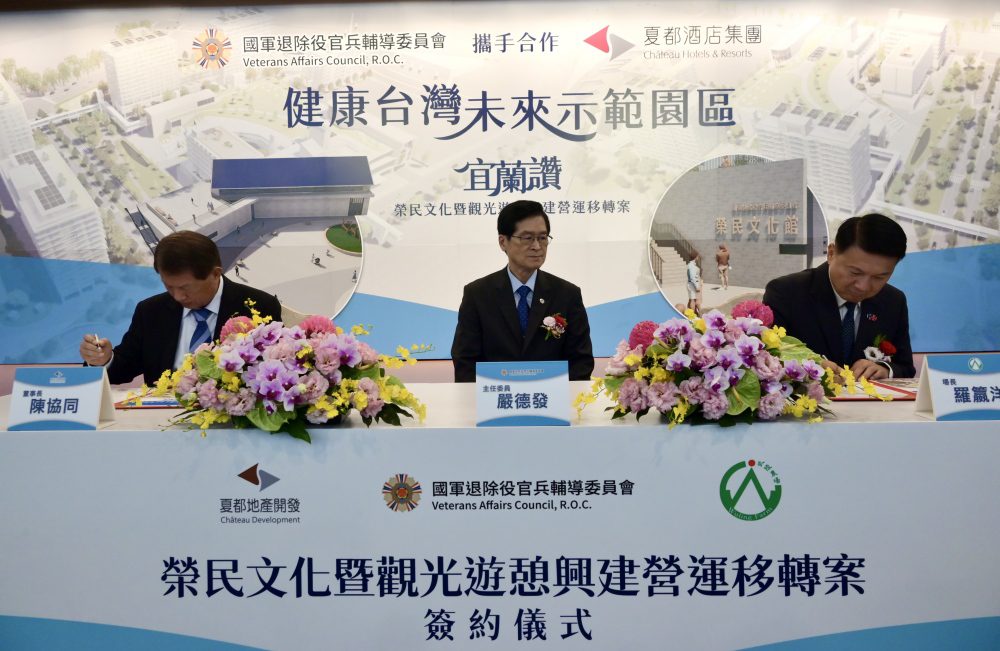 以「健康台灣發展總體政策」為核心概念的促參計畫正式啟動,夏都國際集團所屬「夏都地產」與國軍退除役官兵輔導委員會於本(18)日簽署「(宜蘭讚)榮民文化暨觀光遊憩興建營運移轉案」,該案主題為「健康台灣未來示範園區」,將宜蘭讚規劃為國內首座以休閒觀光同時結合AI智慧醫療服務為核心的示範園區,打造國際性的健康休閒產業典範。