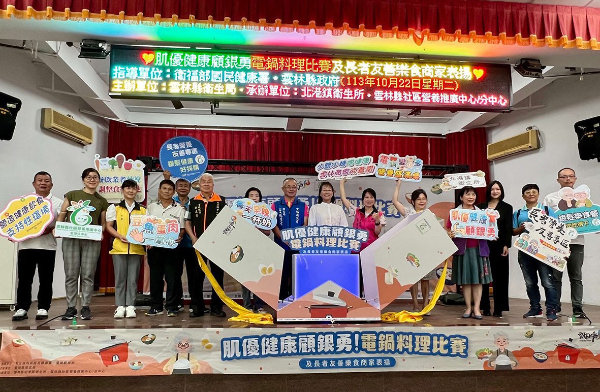 為倡導長者應於日常飲食攝取豆魚蛋肉類及乳品類概念,透過電鍋輕鬆料理出營養均衡的餐食,雲林縣衛生局今(22)日上午於北港鎮老人會舉辦「肌優健康顧銀勇!電鍋料理比賽及長者友善樂食商家表揚」,共有10組長者組隊參加電鍋簡易料理決賽,各隊精心設計出美味且營養均衡的電鍋料理食譜,展現智慧與活力。