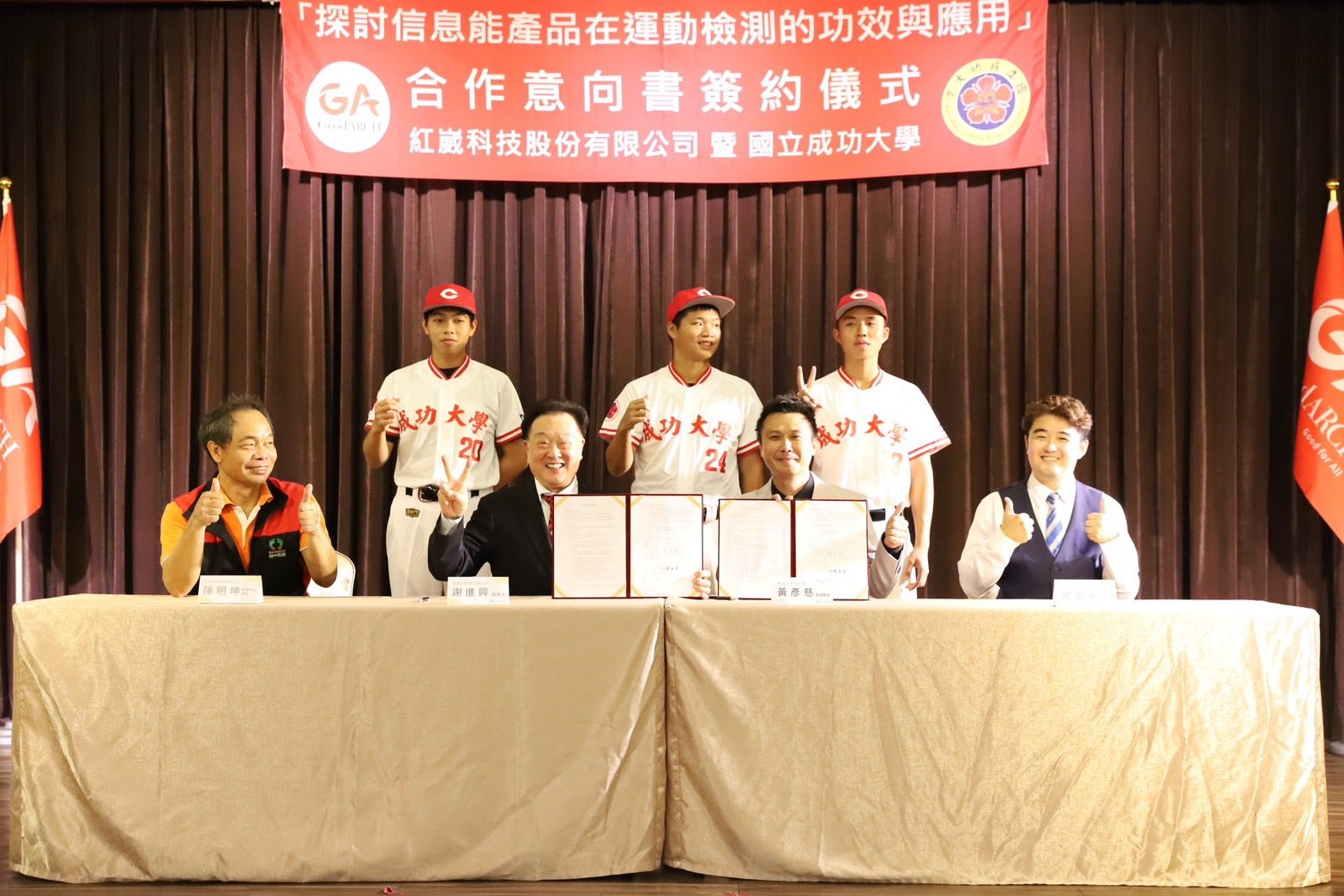 紅崴科技與國立成功大學黃彥慈助理教授11日共同簽署「探討能量產品在運動檢測的功效與應用」合作意向書,將共同探討研究紅崴獨家研發的信息能科技產品對運動員之表現功效。