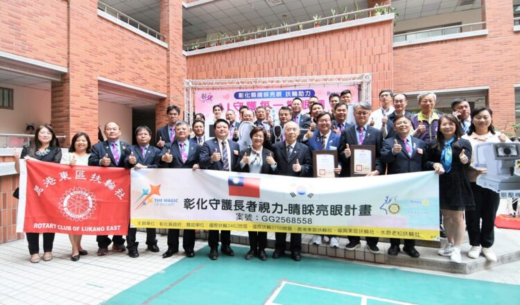 為提升視力健康服務普及性及縮短醫療資源差距,彰化縣引領視力保健邁入AI新世紀!衛生局今(27)日上午於彰化縣警察局中庭,舉辦「彰化縣睛睬亮眼扶輪助力-AI守護每一雙眼睛暨扶輪社全球獎助金捐贈記者會活動」,國際扶輪與所有社員捐贈全球獎助金112萬2,000元,投入彰化縣守護長者視力-睛睬亮眼計畫,由縣長王惠美代表接受。