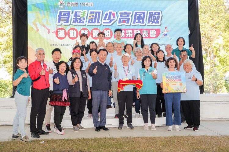 嘉義縣衛生局與南華大學合作,在16鄉鎮市衛生所開辦「骨鬆肌少高風險運動營養班」,讓長者強化身體機能,提升骨質密度,增加肌肉量,降低跌倒與失能風險。4日舉行成果發表會,縣長翁章梁、衛生局長趙紋華及南華大學校長高俊雄等人,共同挑戰40秒深蹲及肌力遊戲競賽,展示訓練成果與活力,場面相當歡樂。