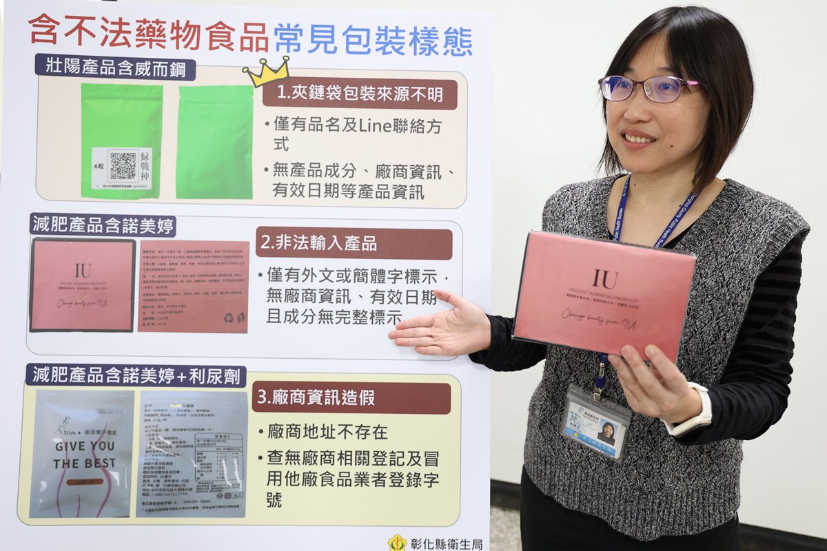 隨著網路購物的普及,於網路販售偽禁藥的情況有日益增多。彰化縣衛生局為了維護消費者用藥安全,於今(113)年辦理「網路販賣不法藥物監控專案」,分別至各網站價購31件膠囊錠狀產品進行檢驗,其中有16件檢出西藥成分,檢出率高達52%,檢出成分中有Sibutramine(西布曲明)、Phenolphthalein(酚酞)等禁藥,二級毒品Amphetamine(安非他命)、tadalafil(犀利士)、sildenafil(威而鋼) 及利尿劑等成分,這些西藥成分服用後,極易對肝臟和腎臟造成傷害,導致身體不可逆之損害。