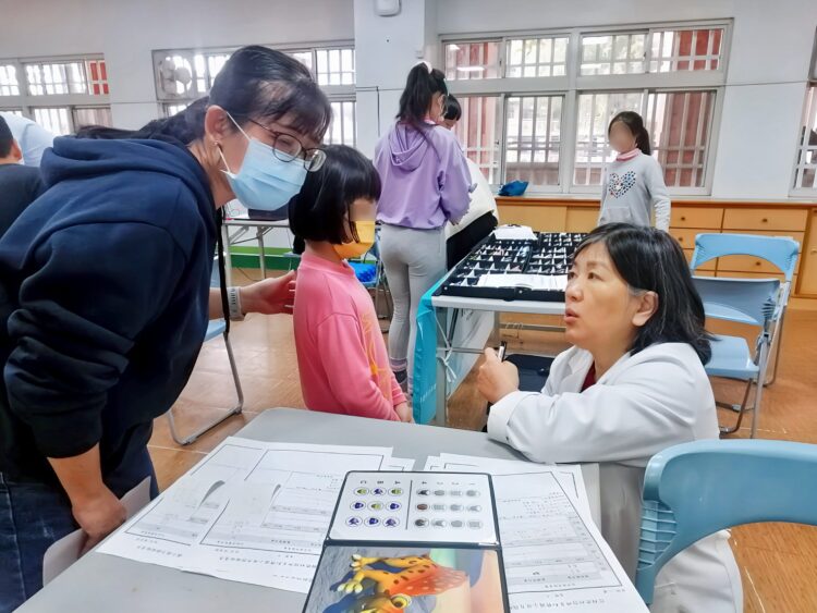 嘉義市信賴眼科25日赴中埔鄉和興國小義診,院長賴麗如發現,有家長竟然幫小孩在便利商店買隱形眼鏡使用,還有名小朋友出現罕見的眼球震顫,她趕緊找校護老師,交代必須送小朋友去大醫院檢查。