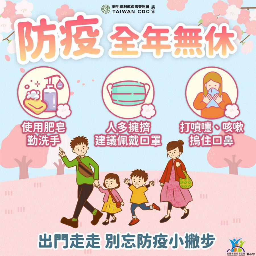 強烈冷氣團一波波來襲,氣溫變化大,加上年末聚會、跨年、旅遊活動多,都會增加疾病傳播的風險。宜蘭縣衛生局長徐迺維表示,接種疫苗是降低傳染病重症和死亡最有效的方法,為了保護家中長者與幼兒的安全,呼籲民眾儘速帶著心愛的家人,接種流感疫苗,早打早安心。如果來不及在年底前完成接種,明年1月1日起,6個月以上民眾都可以至疫苗合約醫療院所接種,記得全家一起來接種,一起保護家中的長者與幼兒。