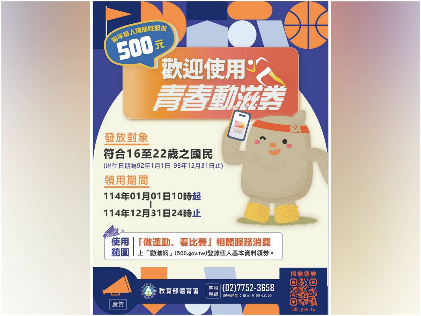 新的一年,你準備好用運動迎接嶄新的開始了嗎?教育部體育署推出的「114年度青春動滋券」自1月1日正式開放領用,為16至22歲的青年朋友量身打造的運動福利,邀你在「做運動」、「看比賽」中釋放熱情、享受青春!