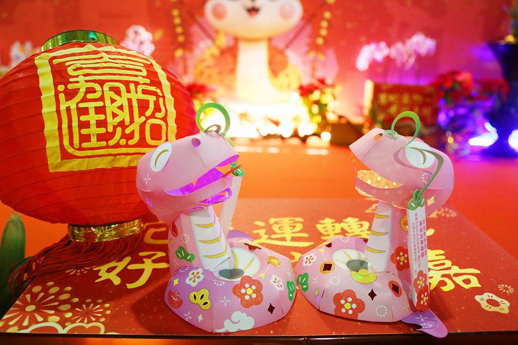 民政處表示,今年的「小花蛇」提燈結構,特別設計成可以吃錢存錢的造型,從嘴巴投入錢幣,錢會聚集到蛇身中央,像一個聚寶盤般,既可收納零散的硬幣,也能存放一些可愛的小物。這樣的設計不僅實用,還增添了存錢的樂趣。
