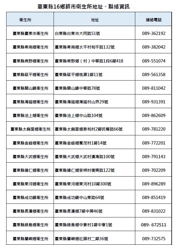 臺東縣衛生局呼籲民眾,除了保持良好個人衛生習慣,定期洗手、配戴口罩,並請65歲以上長者、幼兒及慢性病患等高風險族群,儘速完成流感疫苗接種,以及早獲得保護力。臺東縣流感抗病毒藥劑合約院所(https://reurl.cc/XZr5O0)及疫苗庫存量(https://reurl.cc/WAYDnx)可至衛生局官網查詢。