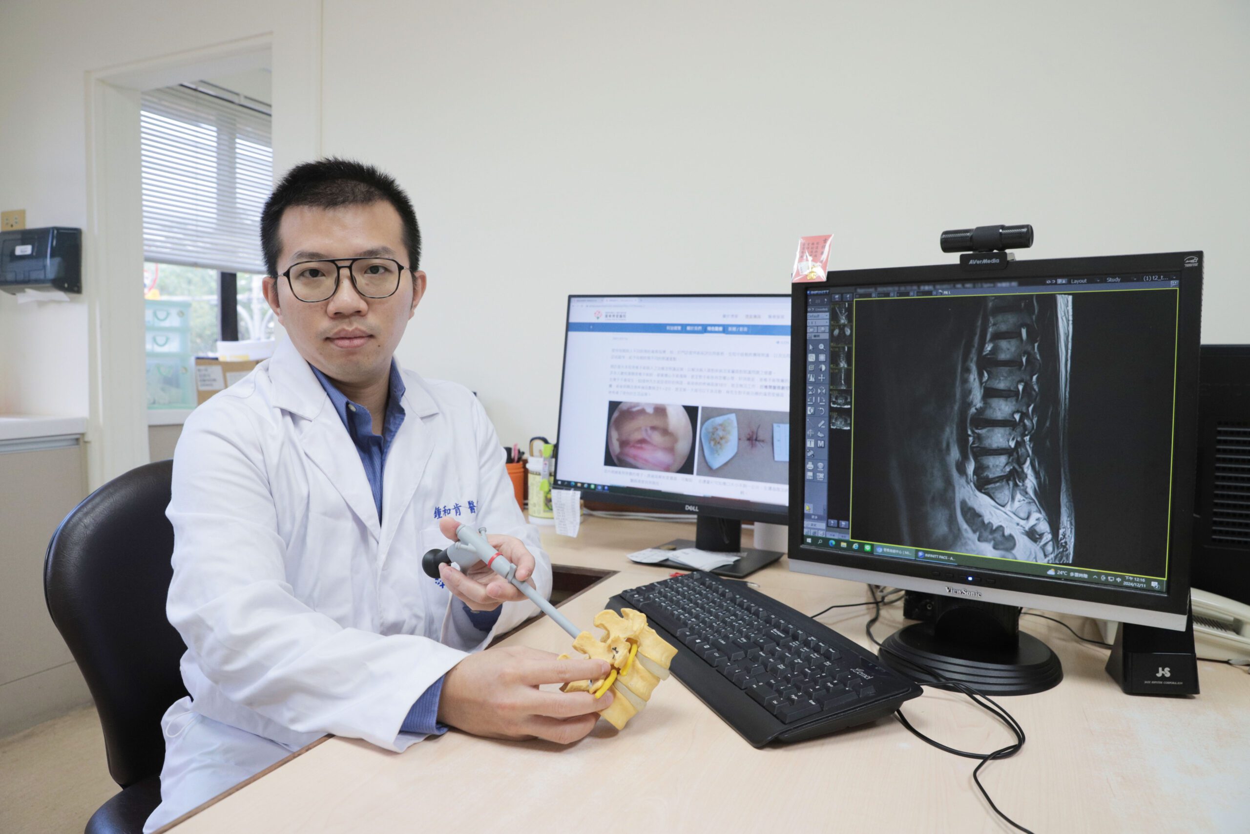 醫師鍾和肯解釋,過去脊椎傳統手術方式大多是從背部開一個手術傷口,撥開背部肌肉群,再針對椎間盤突出處進行神經減壓或脊椎固定處理。但經皮內視鏡腰椎間盤切除術透過小傷口就能切除椎間盤,也不需要打釘子,病人在手術中破壞的範圍小、失血量少、術後恢復快,隔天就可以下床活動,是微創脊椎手術新選擇。