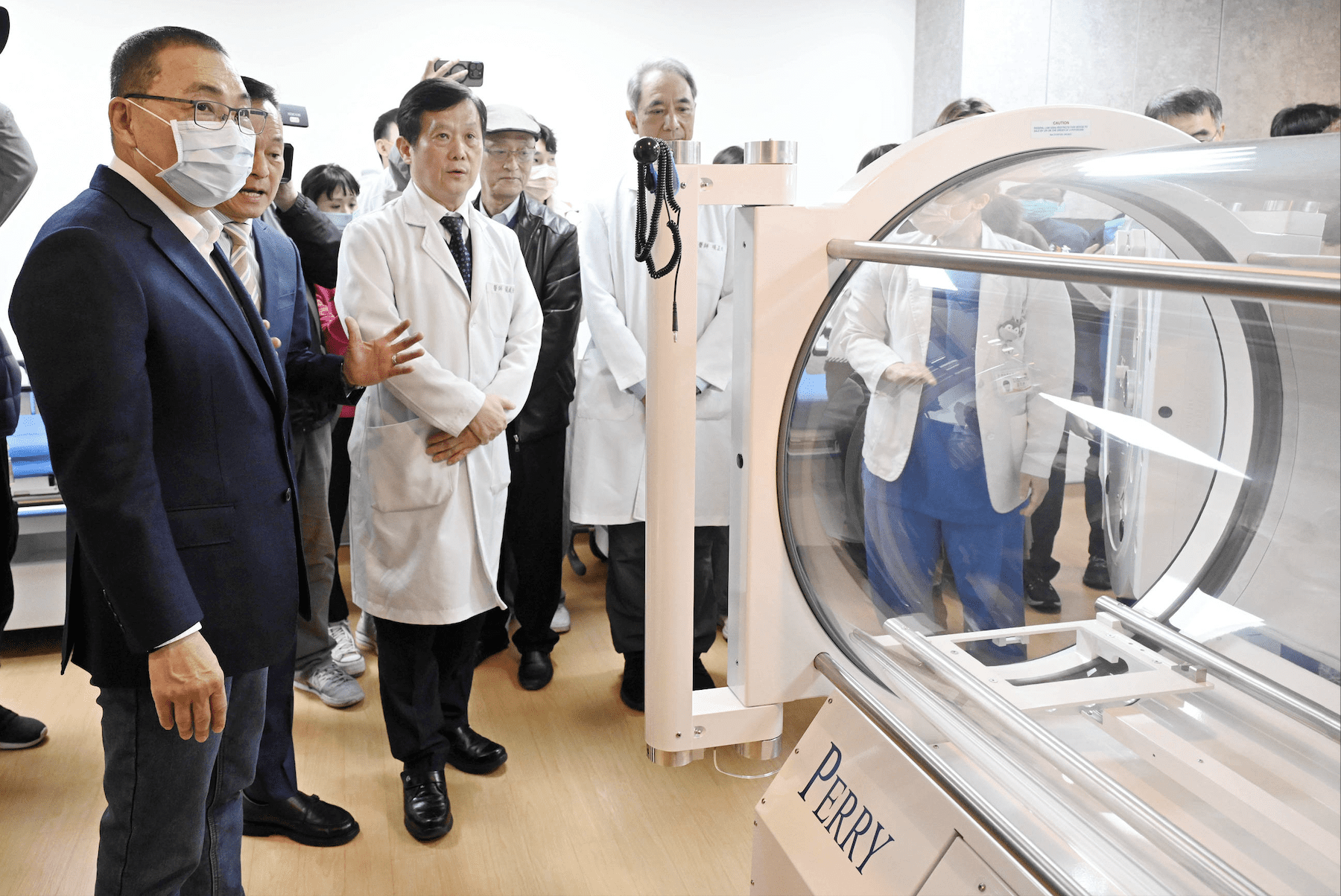 新北聯醫高壓氧治療中心今(18)日正式啟用,市長侯友宜出席揭牌儀式表示,新北市府與新北聯醫積極合作,不斷增進醫療技術,照護市民健康安全。他特別感謝名賢金屬方秉仁董事長捐贈市價共約1,900萬元的高壓氧艙、超音波設備等醫療器材,以及搶救器材一批,大幅提升新北市醫療照護及救災量能。