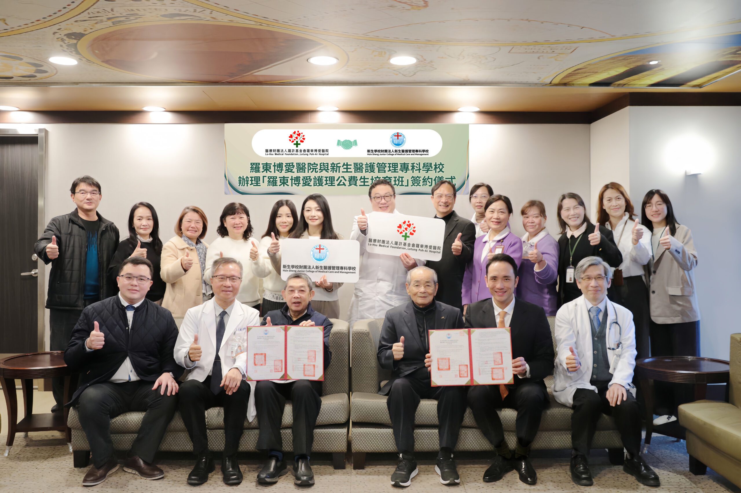 羅東博愛醫院培育未來護理人才,20日與新生醫專簽立產學合作契約,並開設護理公費生專班,新生醫專董事長劉奕彩及校長駱俊宏親自出席簽署儀式,也與羅許基金會董事長許國文、執行長許豪、院長王文斌等人展開交流會議,商討未來院校間教學研究合作方式。