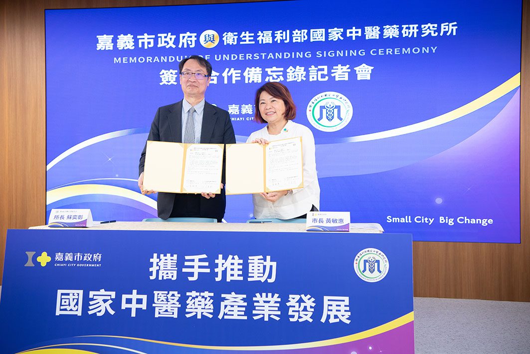 嘉義市政府今(17)日與衛生福利部國家中醫藥研究所,於嘉義市政府六樓第一會議室簽訂合作備忘錄,嘉義大學校長林翰謙、嘉義市中醫師公會理事長陳三元、台灣中藥臨床學會理事長蘇超麒等產官學研民代表共同見證,雙方將在中草藥種植、中醫藥醫療照護與研究及人才培育等方面加強合作關係,共同推動國家中醫藥產業發展。