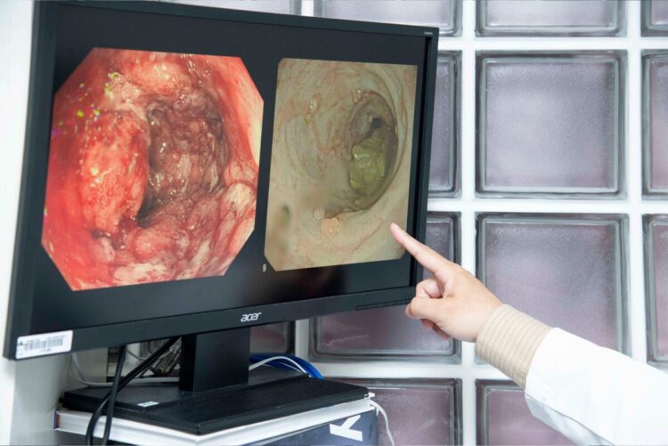 ▲腸鏡顯示陳女士腸道病灶範圍廣、潰瘍嚴重,確診為急性嚴重潰瘍性結腸炎(如圖左)。(圖/彰基提供)