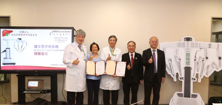 為能嘉惠服務更多病患及培養新進外科人才,財團法人慈桂肝膽醫學研究基金會宣布2024年9月將正式捐贈一套達文西機器手術系統予台大醫院癌醫中心分院,並於今(21)日在台大醫院癌醫中心分院舉辦捐贈儀式。