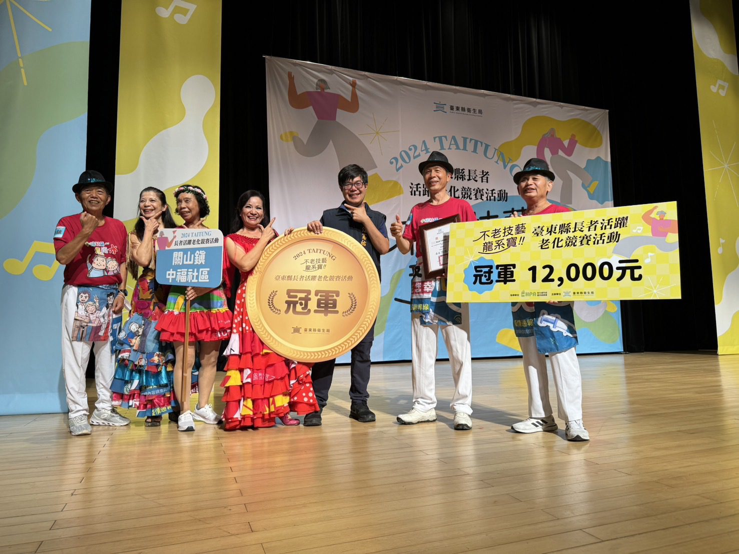 臺東縣衛生局21日舉辦113年度臺東縣長者活躍老化競賽-不老技藝龍是寶」長者活躍老化競賽,共有480位來自14鄉鎮的長者以舞蹈和健康操的形式,展現青春活力和團隊精神,最後由關山鎮中福社區與金峰鄉正興社區發展協會脫穎而出,分別榮獲冠、亞軍,獲得1萬2000元與1萬元豐厚獎金,並將代表臺東縣參加9月初的東區競賽。