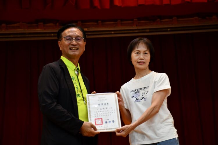6日的結業典禮,除了由市長頒發結業證書,恭喜大家「畢業了」,與會的長者們也紛紛上台展現學習成果,分別有:「超實用旅遊英語班」演唱英文歌;「觀光日語初級快樂學班」唱日文歌;「詩詞、對聯欣賞、寫作吟唱班」吟唱唐詩;「銀髮族樂活唱跳班」演唱台語歌。