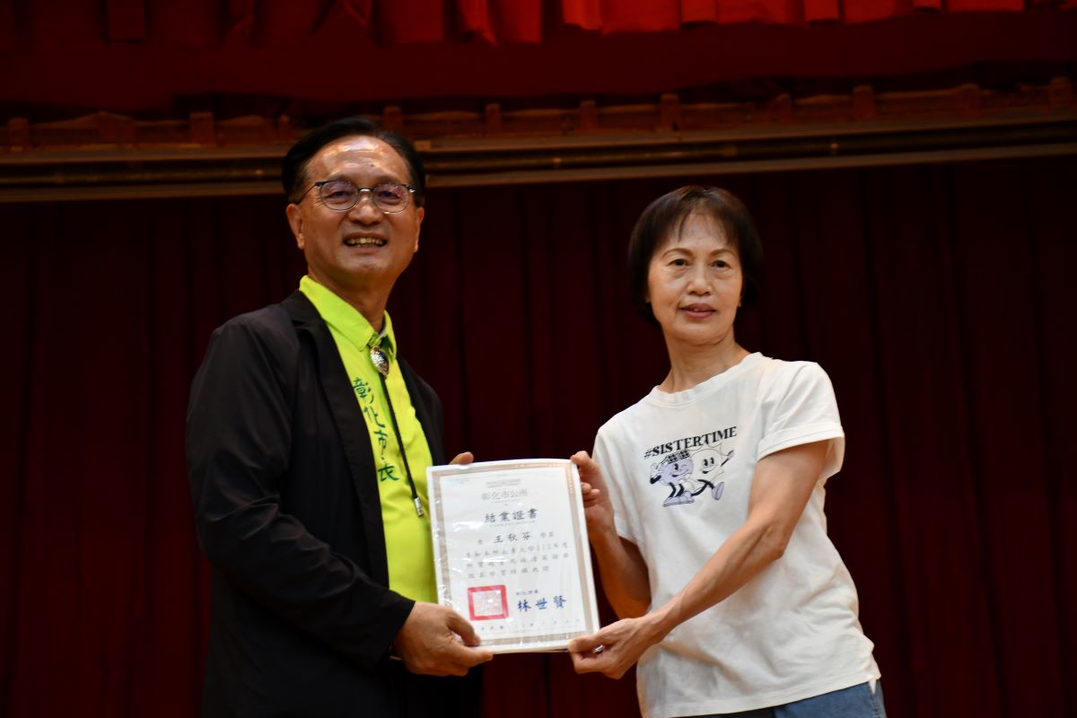 市長林世賢在結業式中,也向全場千餘位學員報告說,雖然彰化市一年度的預算才11億多元,欣慰的是,5年多來在市民代表會全力支持與市公所團隊的努力下,獲得了六項的國家級大獎;但他也有感而發,點出彰化縣全縣的整體發展仍相當落後,亟需發展高科技產業,才能促進經濟發展並留住年輕人。