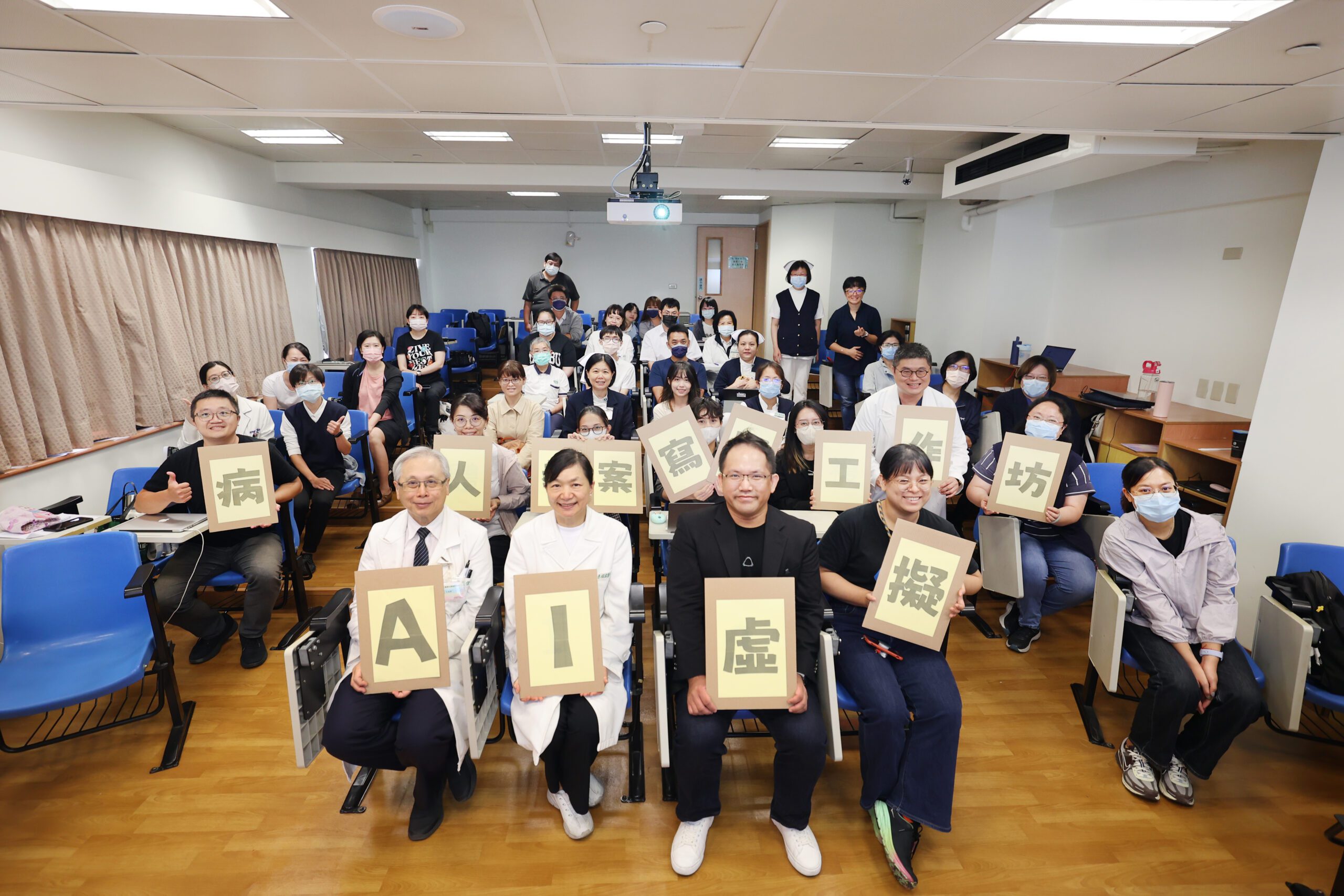 這次開辦的AI虛擬病人教案撰寫工作坊吸引了包括教學部、影像醫學部、藥學部、營養科、檢驗醫學科、護理部、病理科、急診室、外科加護病房、呼吸照護中心、復健技術科、精神醫學部、小兒部、護理學系、醫學教育創新暨研究中心等跨院校從事醫學教育的同仁參加。